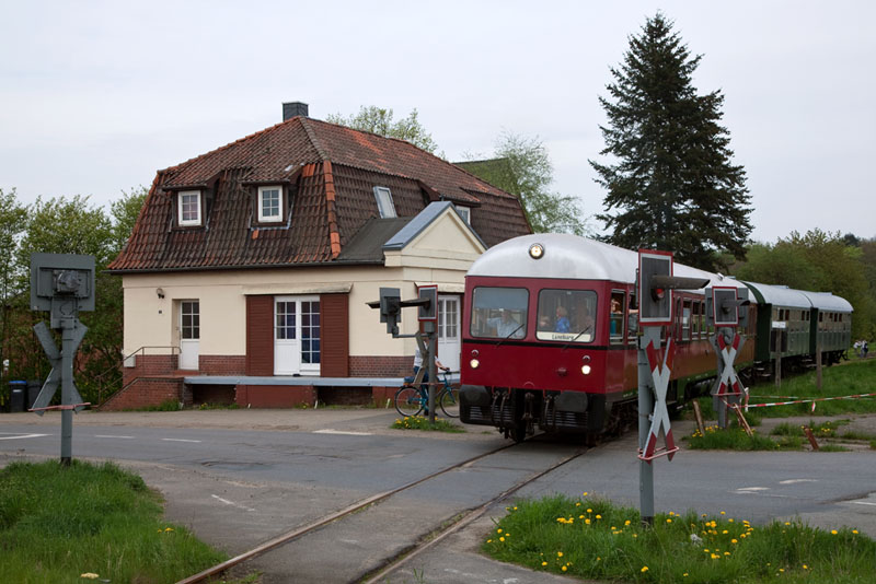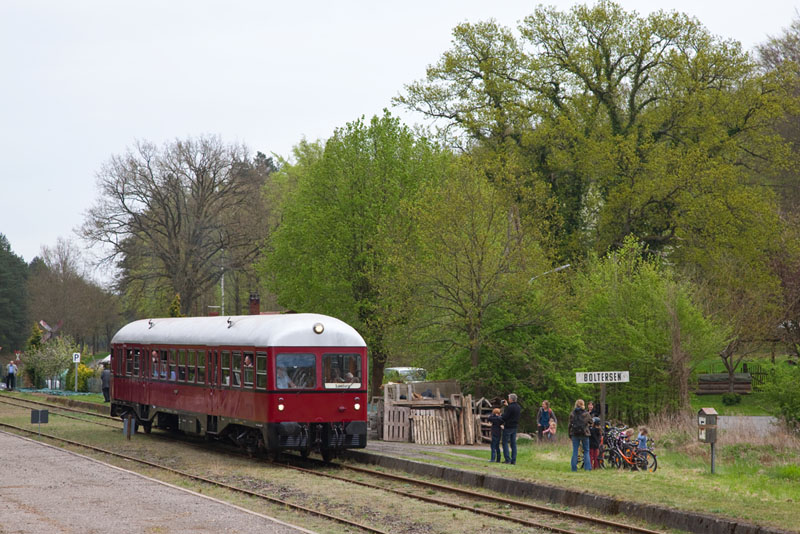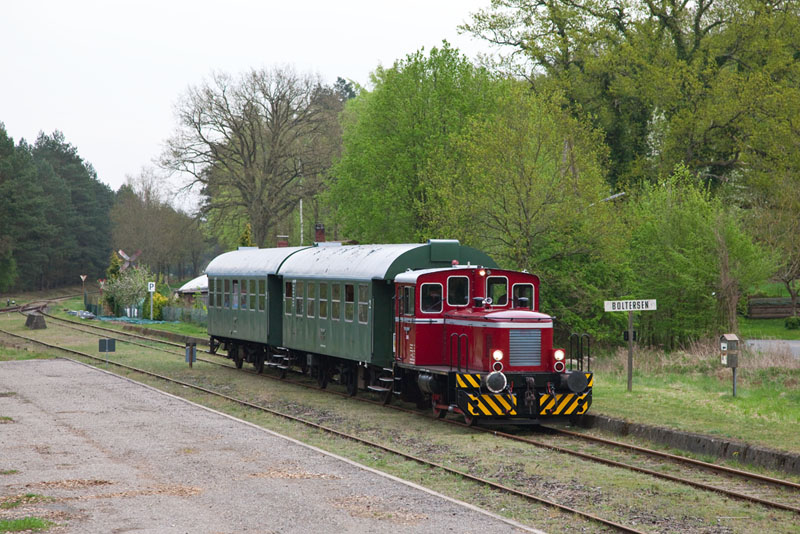 | Halt in dem Kreuzungsbahnhof mitten im Walde. Boltersen, 29. April 2012 |