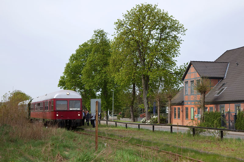 | Halt in Erbstorf, um viele Fahrgäste und Ehrengäste mitzunehmen. Erbstorf, 29. April 2012 |