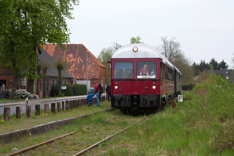 | Halt in Erbstorf und Ausstieg einiger zufriedener Fahrgäste. Erbstorf, 29. April 2012 |