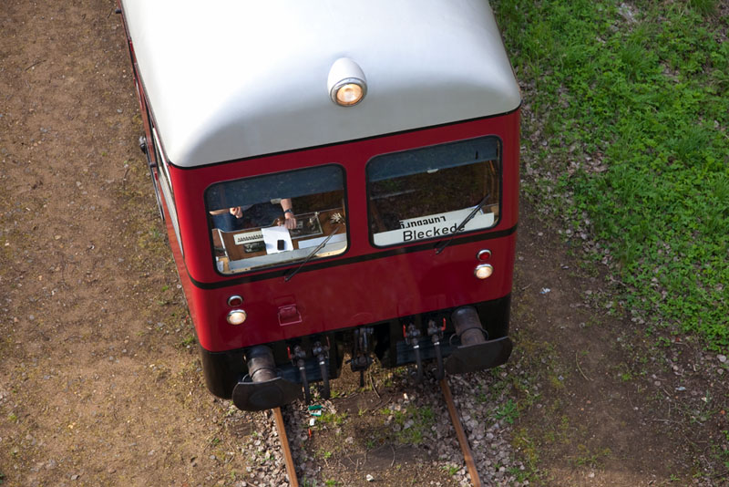 | Nun brummte der MaK GDT 0518 mit seinen beiden Wagen die Rampe hinauf zum Personenbahnhof Lüneburg. Lüneburg Süd, 29. April 2012 |