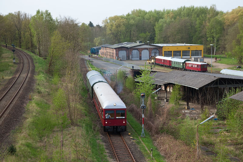 | Nun schob die 23041 ihre beiden Wagen in das Betriebswerk hinein. Lüneburg Süd, 29. April 2012 |