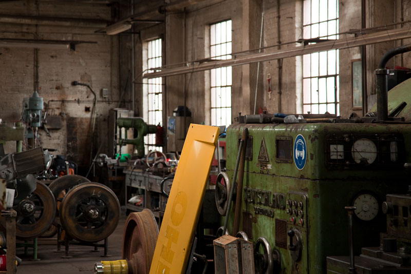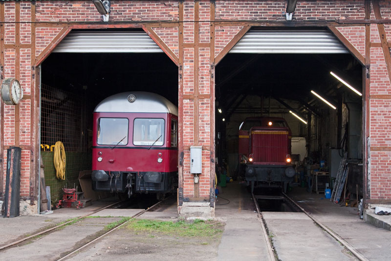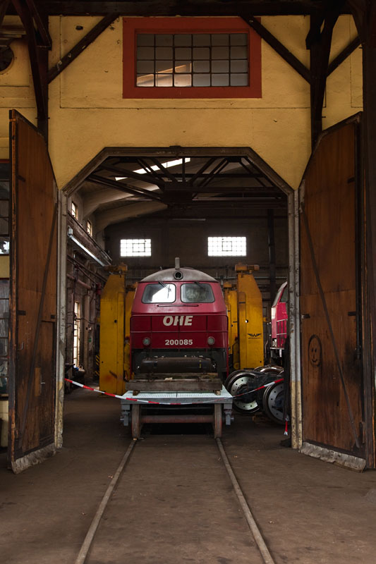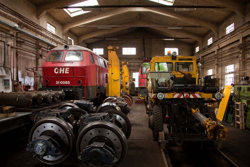 | Ein Blick in eins der heiligen Hallen des Eisenbahn-Ausbesserungswerkes (EAW) der OHE. Bleckede, 29. April 2012 |