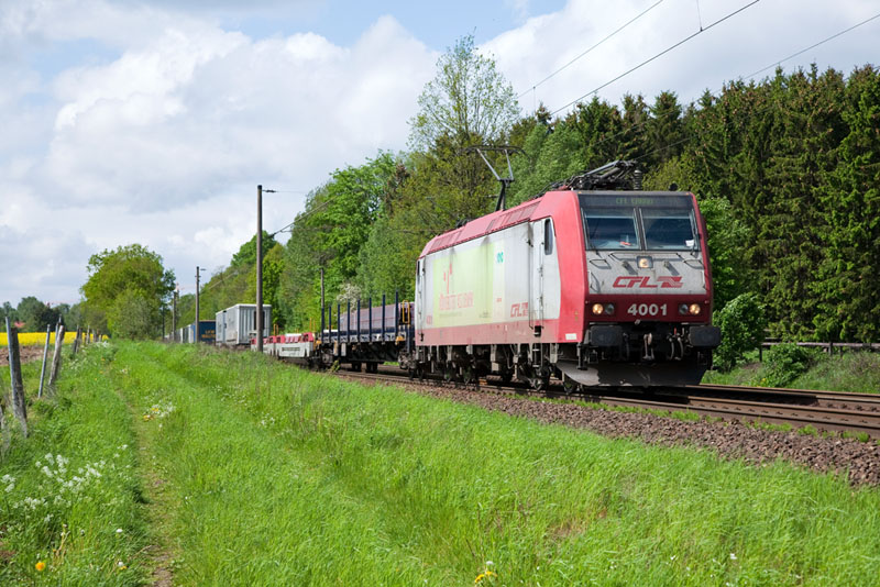 | Der KLV-Zug von Bettembourg nach Lübeck mit der Luxemburgischen 4001. Reindorf, 12. Mai 2012 |