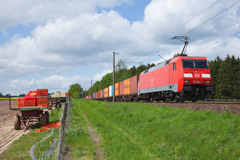 | Die saubere 152 167-3 mit einem Containerzug nach Hamburg. Reindorf, 12. Mai 2012 |
