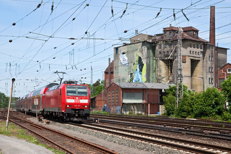 | Der RegionalExpress nach Hannover mit der 146 101. Verden (Aller), 18. Mai 2012 |