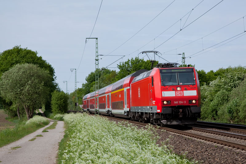 | Der RegionalExpress nach Bremerhaven mit der 146 124-3. Osterholz-Scharmbeck, 18. Mai 2012 |