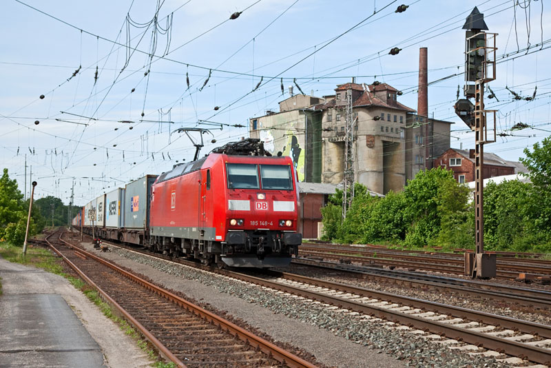 | Die 185 148-4 kam mit einem Containerzug von Bremerhaven. Verden (Aller), 18. Mai 2012 |
