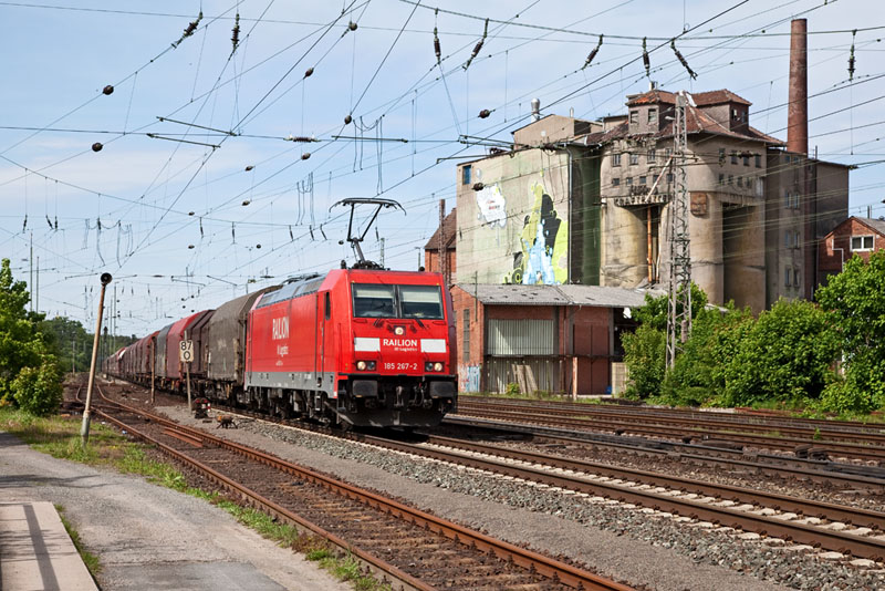 | Mit einem Stahlzug aus Bremen rödelte die 185 267-2 durch den Bahnhof. Verden (Aller), 18. Mai 2012 |