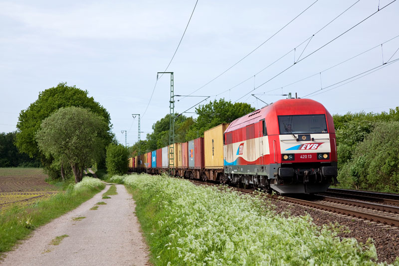 | Statt des erwarteten Krokodils 1020 der MWB kam die 420 13 der EVB – schade! Osterholz-Scharmbeck, 18. Mai 2012 |