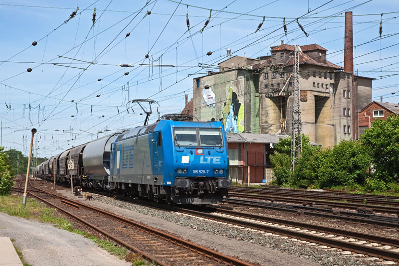 | Ja, die 185 528-7 der österreichischen LTE mit einem Cerealienzug! Verden (Aller), 18. Mai 2012 |