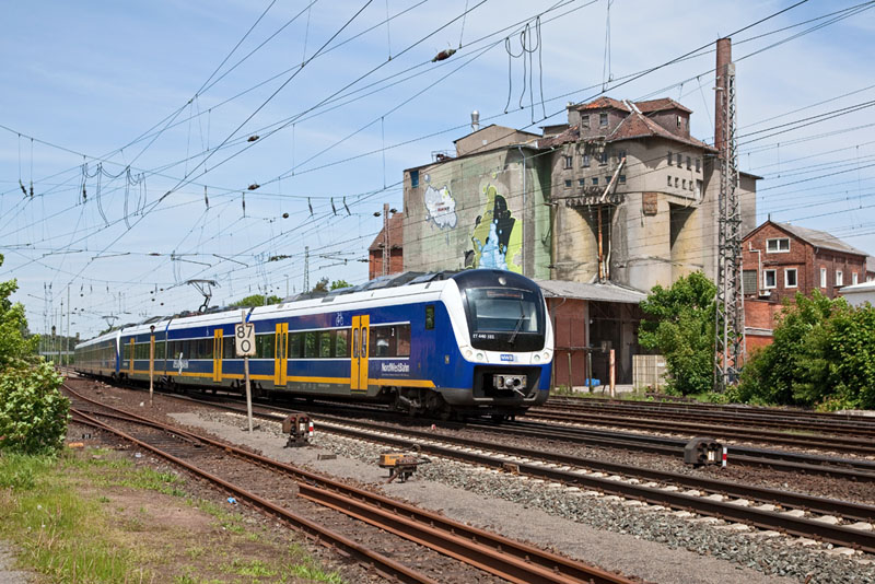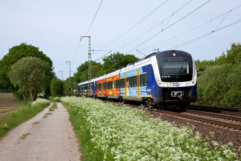 | Die Bemer Regio-S-Bahn mit den ET 440 335 und 345. Osterholz-Scharmbeck, 18. Mai 2012 |