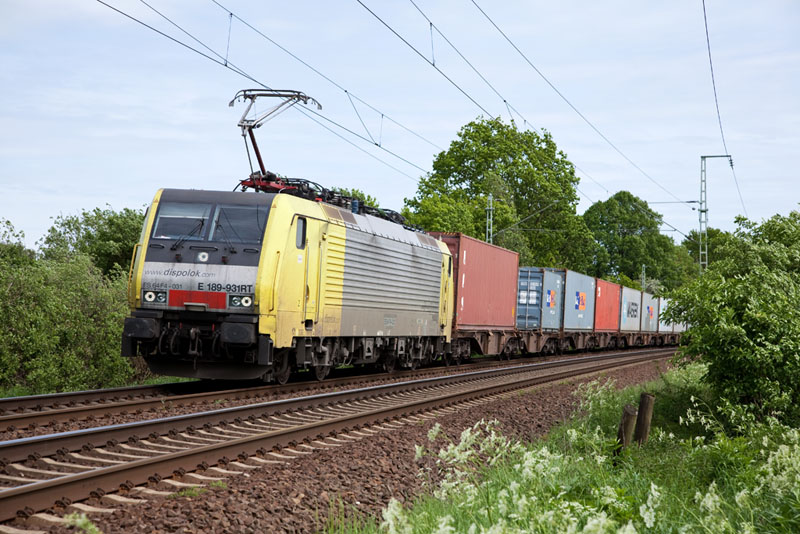 | Mit noch mehr Seekisten kam die ES 64 F4-031 der TX Logistik von Bremerhaven. Osterholz-Scharmbeck, 18. Mai 2012 |