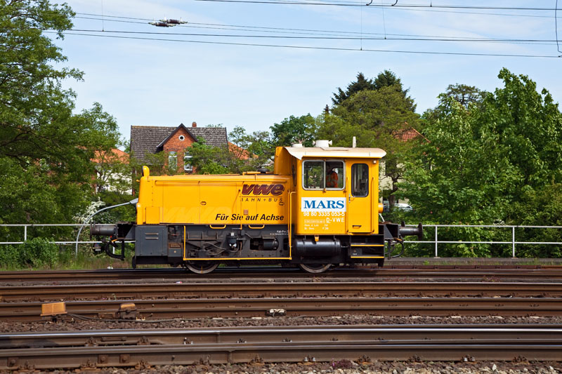 | Die Köf "MARS" der Verden-Walsroder Eisenbahn kam herangedieselt. Verden (Aller), 18. Mai 2012 |