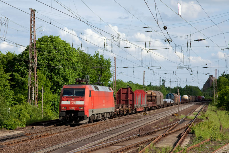 | Einen schönen schweren gemischten Güterzug hatte die 152 151-7 nach Maschen zu bringen. Bad Bevensen, 19. Mai 2012 |