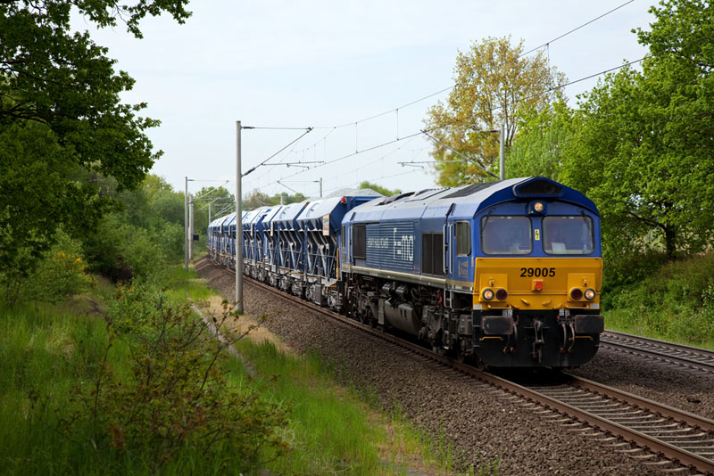 | Wow, auf den P-Gleisen ein rassiger HHPI-Bomber nach Hamburg mit der 29005 "Ted Gaffney"! Klecken, 19. Mai 2012 |