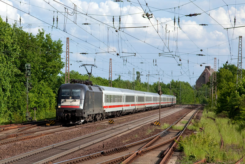 | Mit Karacho donnerte der InterCity 2082 "Königssee" mit der ES 64 U2-074 nach Hamburg. Bad Bevensen, 19. Mai 2012 |