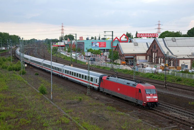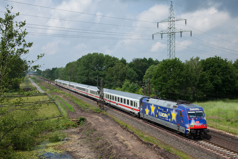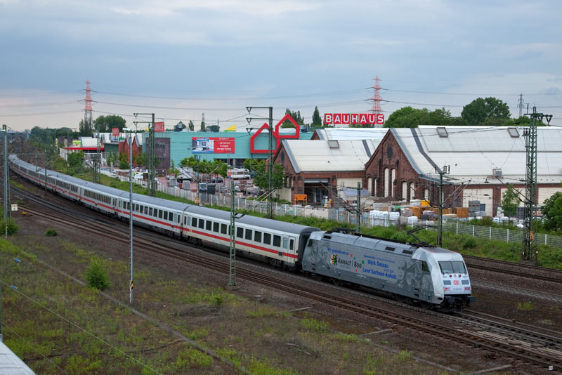 | Die 101 028-9 "800 Jahre Anhalt" mit dem InterCity 2024. Hamburg-Harburg, 7. Juni 2012 |