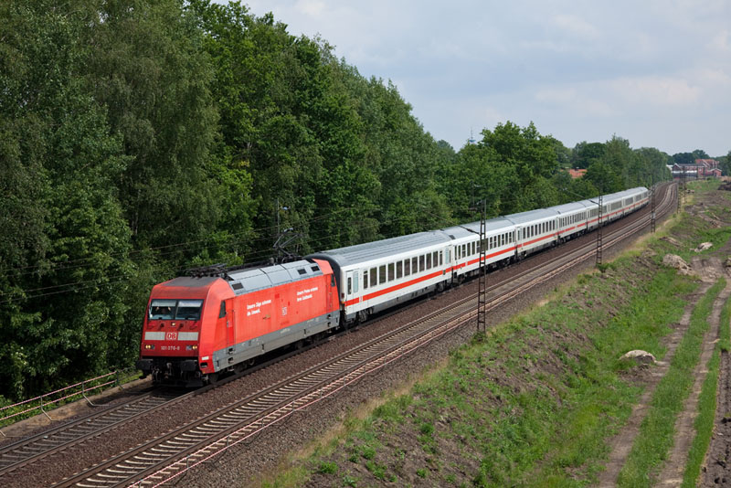 | Der InterCity 2170 mit der 101 076-8. Grevelau, 7. Juni 2012 |