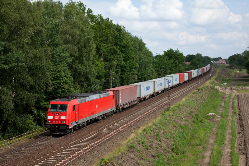 | Noch mehr Container in den Hafen brachte die 185 384-5. Grevelau, 7. Juni 2012 |