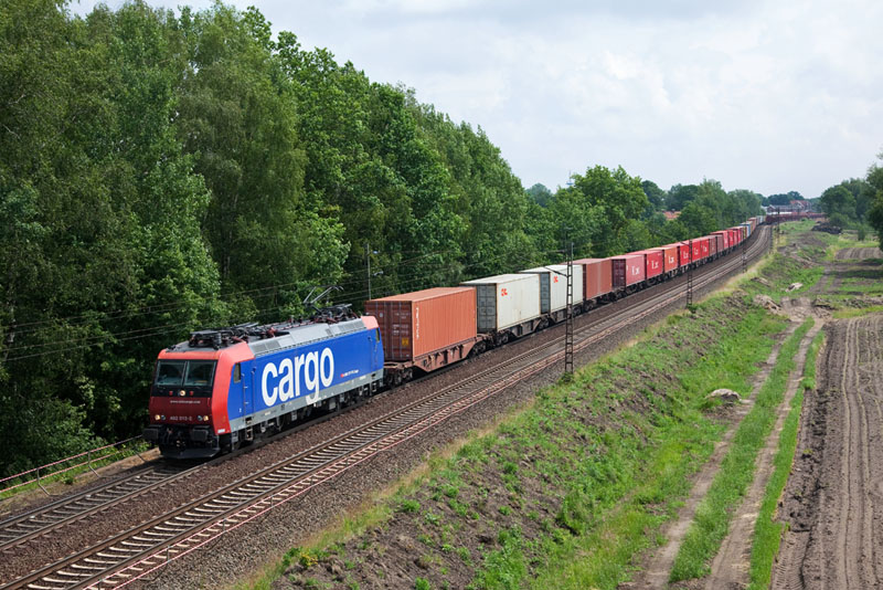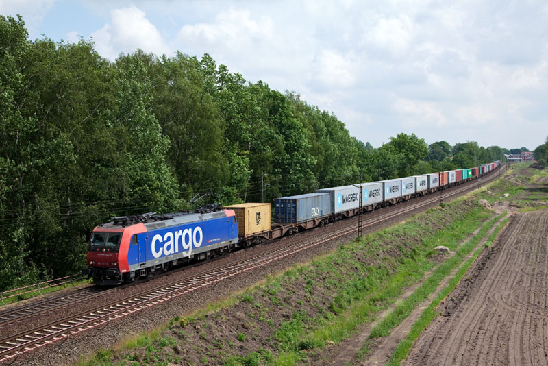| Etliche Container brachte die 482 012-2 der SBB Cargo nach Hamburg. Grevelau, 7. Juni 2012 |