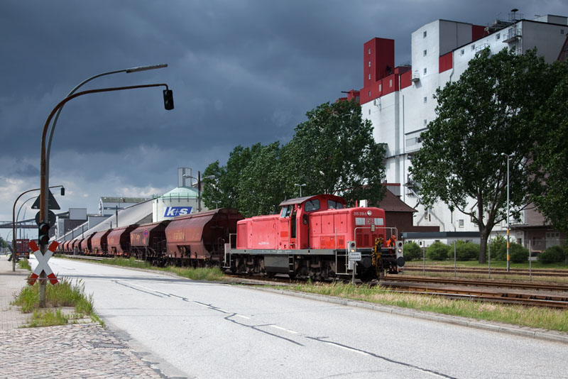 | Die 295 018-6 bediente das Kali-Kai und drückte einige Tanoos-Wagen rein. Hamburg-Hohe Schaar, 10. Juni 2012 |