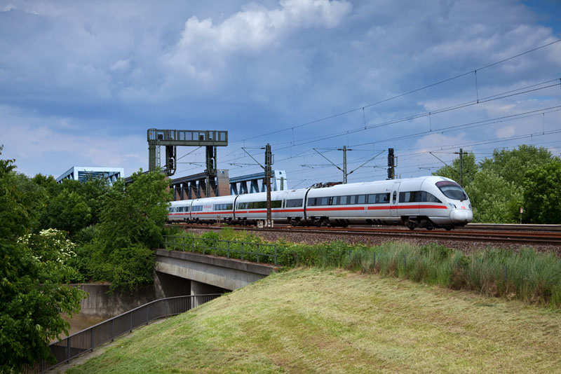 | Der ICE 1181 nach München wurde durch den Triebzug 411 004/504 gebildet. Hamburg Süderelbbrücken, 10. Juni 2012 |