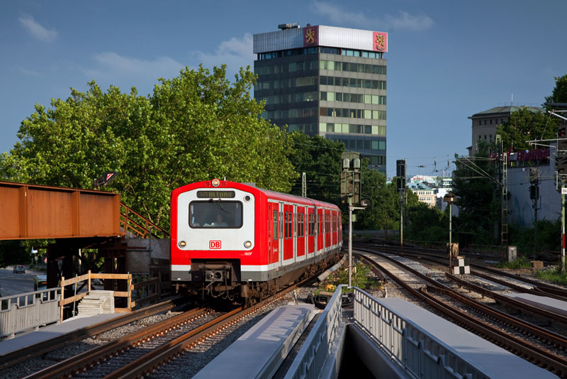 | Wegen Bauarbeiten fuhr die S21 heute nach Altona und nicht Elbgaustraße, einfahrender Zug mit 472 027 + 472 014. Hamburg-Dammtor, 10. Juni 2012 |