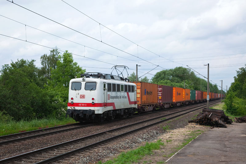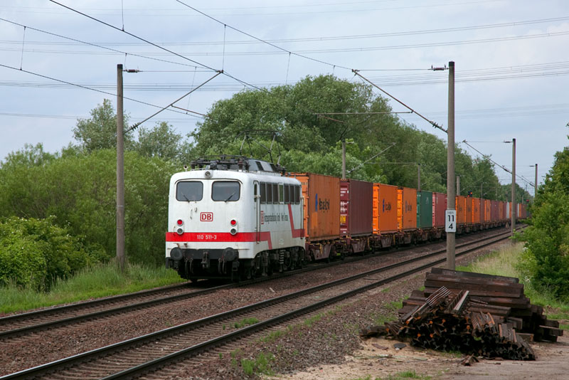 | …die 110 511-3 als Gewährleistungslok im Einsatz! Hamburg-Moorburg, 16. Juni 2012 |