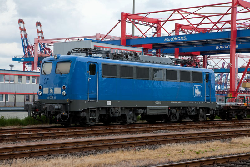 | Die 140 038-0 – ehemals 140 851-7 der DB. Hamburg-Waltershof, 16. Juni 2012 |