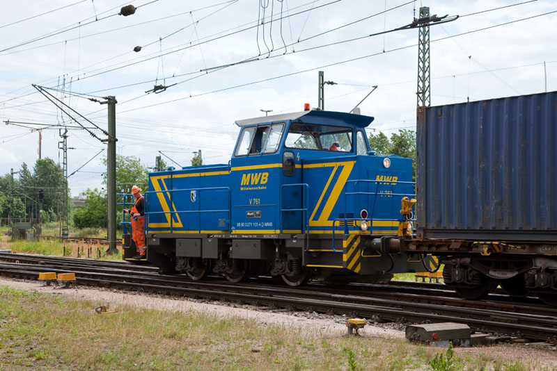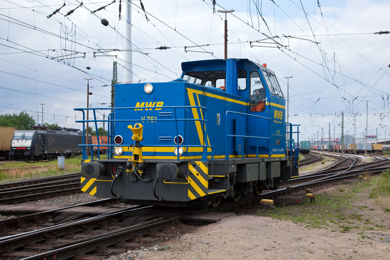 | Auch die V 761 der MWB, eine MaK DE 502 von 1985, ist neu im Hamburger Rangierdienst! Hamburg-Waltershof, 17. Juni 2012 |
