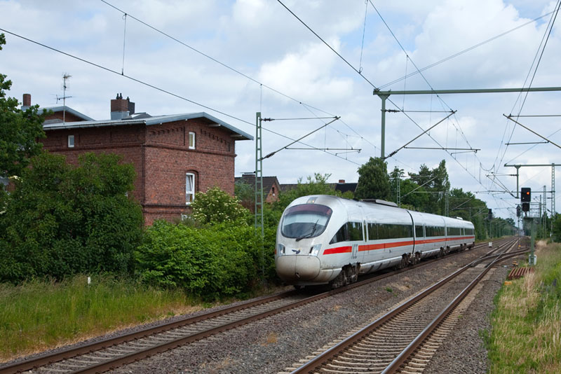 | Eins der Diesel-ICE von Arhus über Hamburg nach Berlin mit dem 605 001/501. Dauenhof, 19. Juni 2012 |