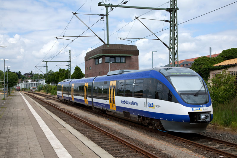 | Der NOB-Talent VT 730 pausierte am Stellwerk. Itzehoe, 19. Juni 2012 |