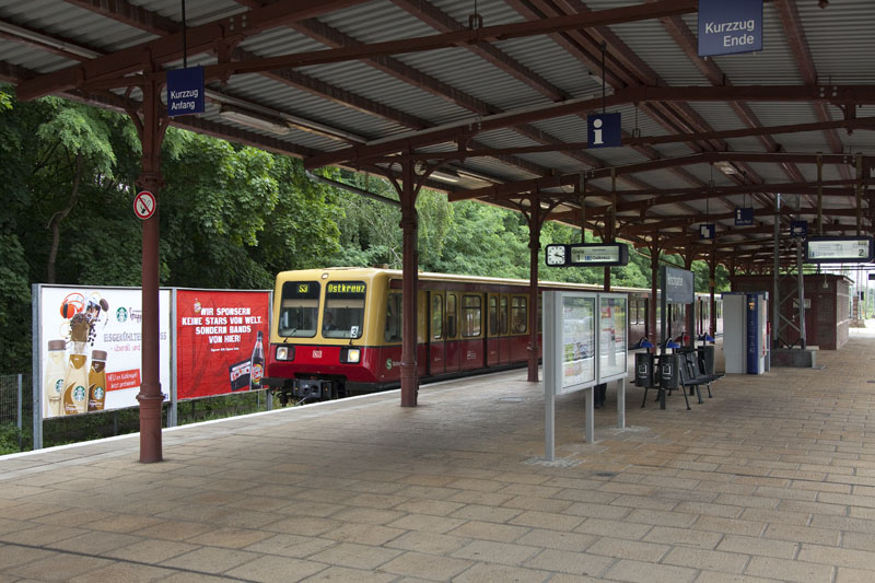| Die lange "verschmähte" Baureihe 485 der Berliner S-Bahn wird wieder rege benutzt, hier als S3. Berlin-Hirschgarten, 27. Juni 2012 |