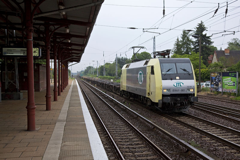 | Die ITL ES 64 F-901 mit einem recht leeren Containerzug von Polen. Berlin-Hirschgarten, 27. Juni 2012 |