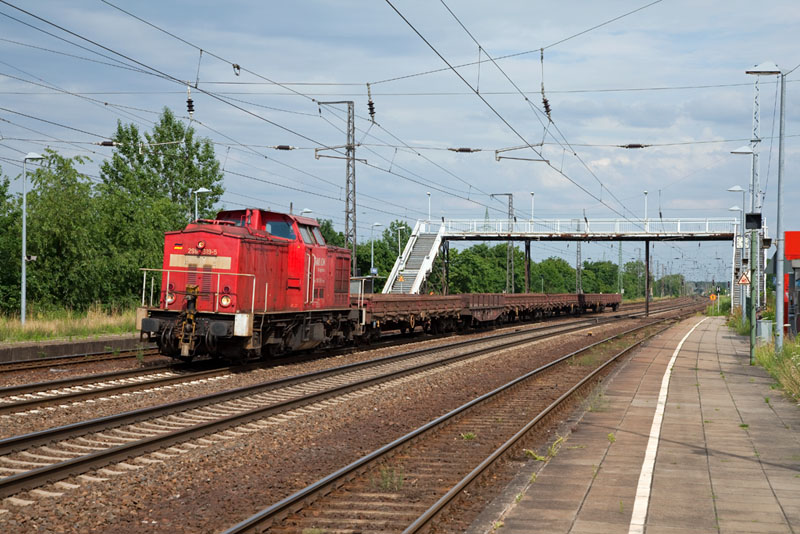 | Eine 298 sieht man nicht mehr oft, hier die 298 319-5 mit einer Übergabe. Saarmund, 29. Juni 2012 |