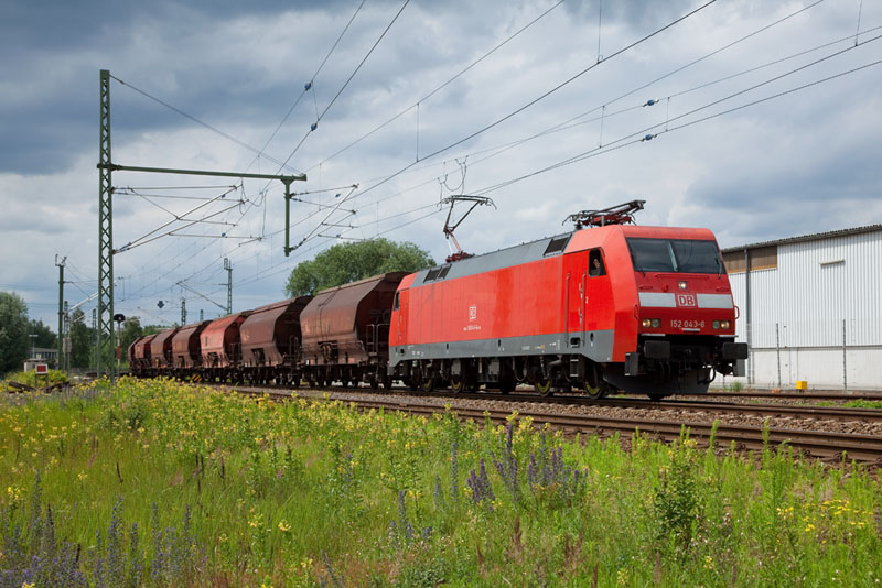 | Wenig später folgte die 152 043-6 mit einem Kalisalzzug aus Tanoos-Wagen. Hamburg-Hohe Schaar, 1. Juli 2012 |