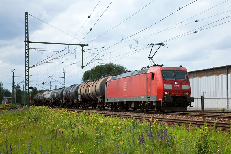 | Ausfahrt frei für den Kesselwagenzug mit der 185 042-9. Hamburg-Hohe Schaar, 1. Juli 2012 |