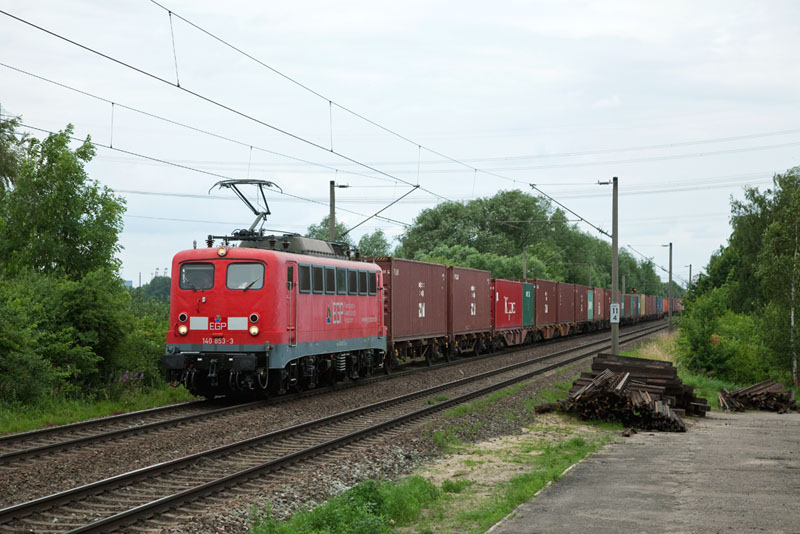| Eins der ersten Planleistungen für die private 140 853-3 der EGP! Mit einem Containerzug von Waltershof. Hamburg-Moorburg, 1. Juli 2012 |