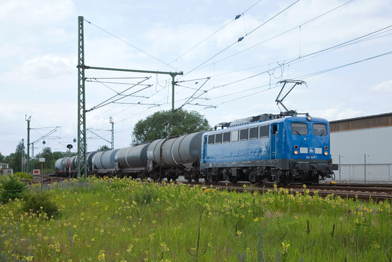 | Joo, die blau gewordene 140 037-1 (ex. 140 831 der DB) mit einem Kesselwagenzug nach Priesterwitz! Hamburg-Hohe Schaar, 1. Juli 2012 |