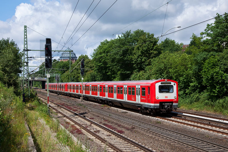 | Eine S21 nach Aumühle über Bergedorf mit 472 002 und 472 034. Hamburg-Rotherbaum, 15. Juli 2012 |