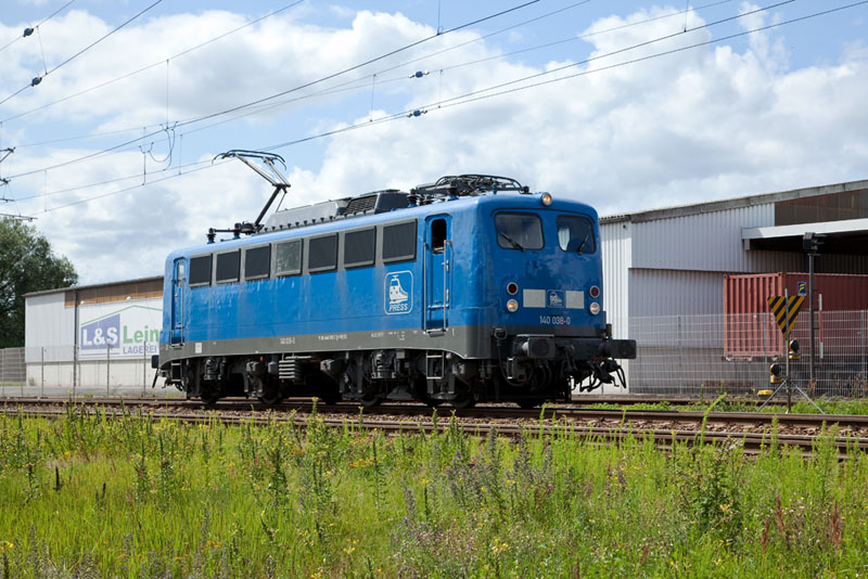 | Die blaue 140 038-0 (ex 140 851-7) der PRESS rollte aus dem Bahnhof heraus. Hamburg-Hohe Schaar, 15. Juli 2012 |