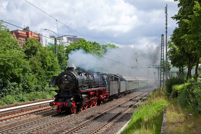 | Mit dem dritten Sonderzug DPE 5918 Oberhausen - Hamburg zu den "Cunard Days" kam die 01 1066 der Ulmer EF. Hamburg-Rotherbaum, 15. Juli 2012 |