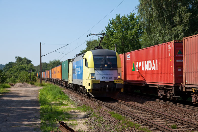| Zur selben Zeit rollte die ES 64 U2-008 von boxXpress.de herein. Hamburg-Moorburg, 25. Juli 2012 |
