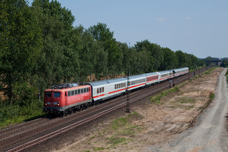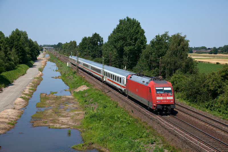 | Die 101 073-5 rauschte mit ihrem InterCity an der Baustelle des dritten Gleises vorbei. Borstel, 25. Juli 2012 |