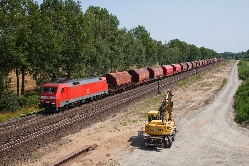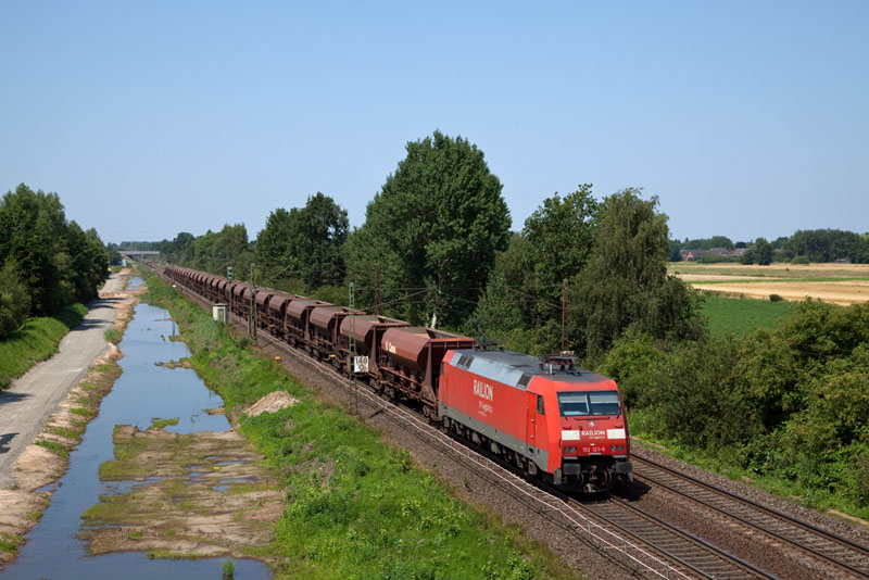 | Die 152 123-6 mit einem rassigen Schüttgutzug gen Süden. Borstel, 25. Juli 2012 |