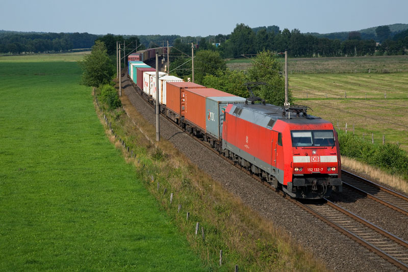| Mit vielen Seekisten aus dem Hamburger Hafen kam die 152 132-7. Ramelsloh, 25. Juli 2012 |