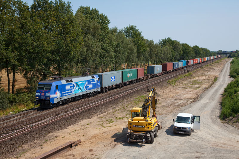 | Container brachte die 152 136-8 "AlbatrosExpress" nach Hamburg. Borstel, 25. Juli 2012 |