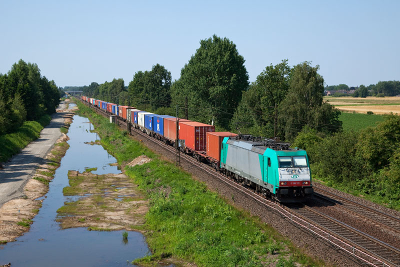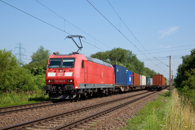 | Aus dem Hafen heraus kam die 185 058-5. Hamburg-Moorburg, 25. Juli 2012 |