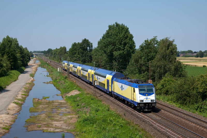 | Nach Lüneburg fuhr dieser metronom Regional mit der ME 146 533-5. Borstel, 25. Juli 2012 |