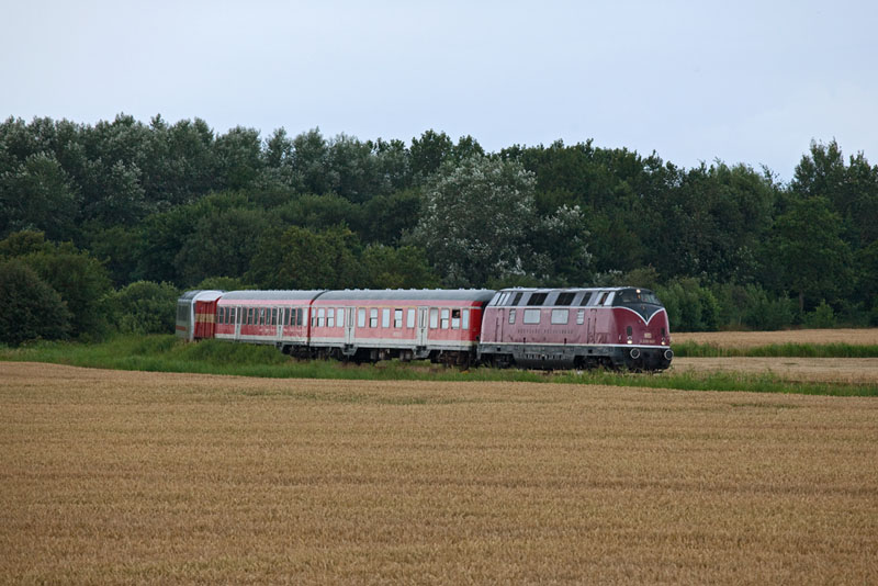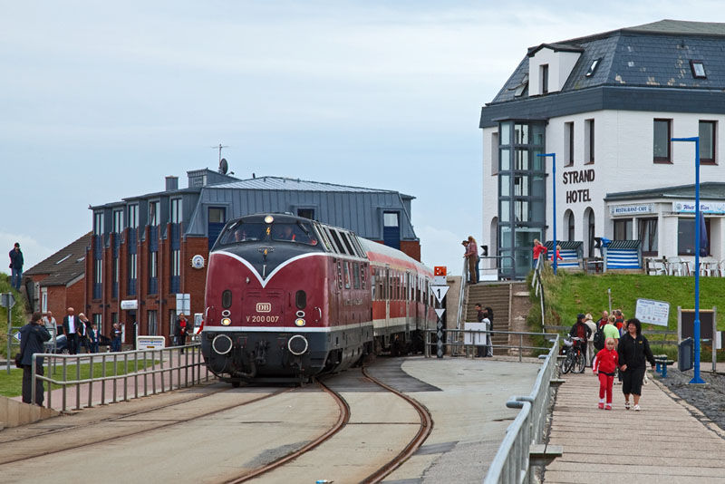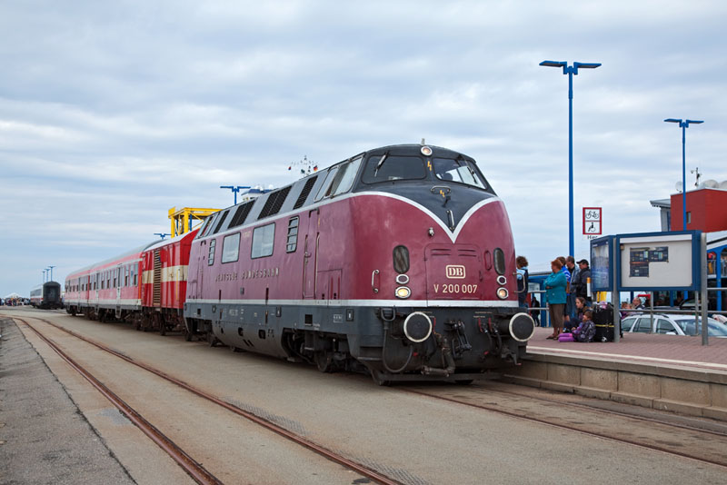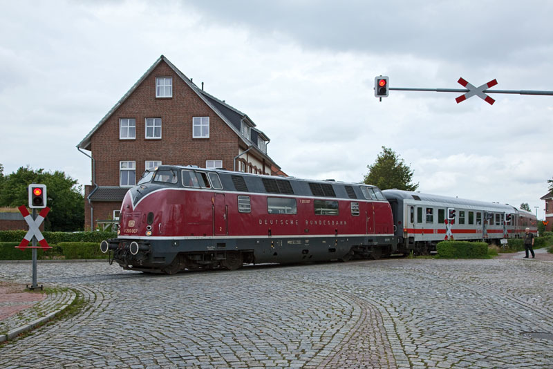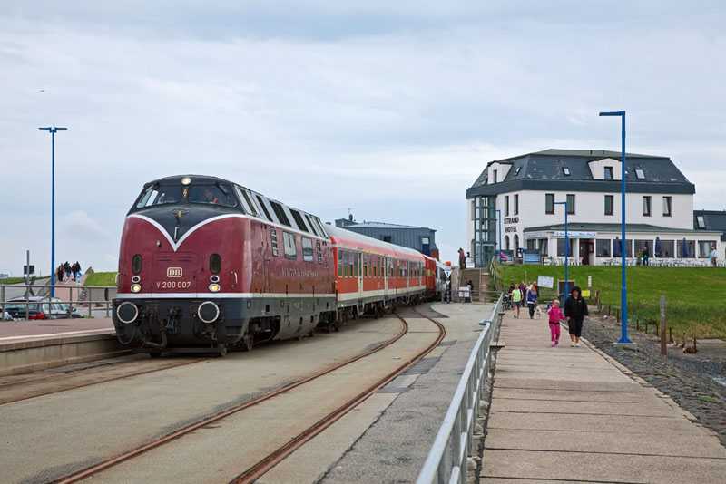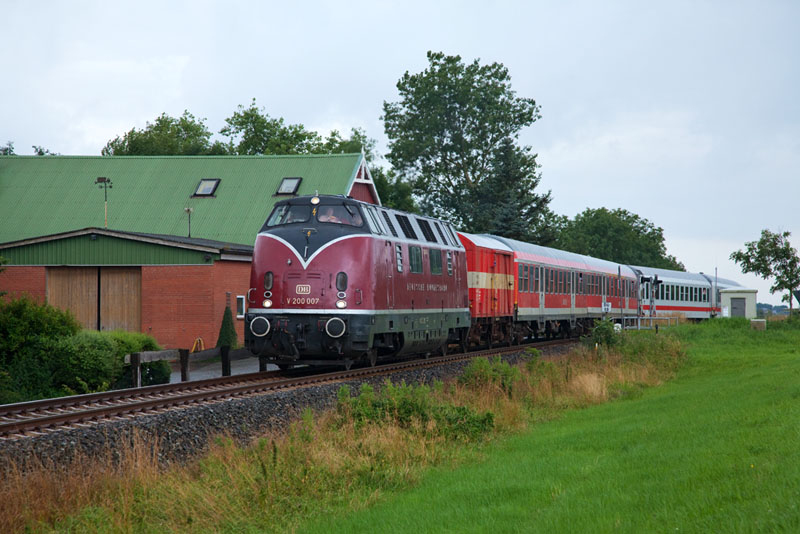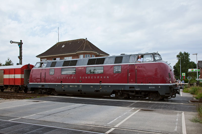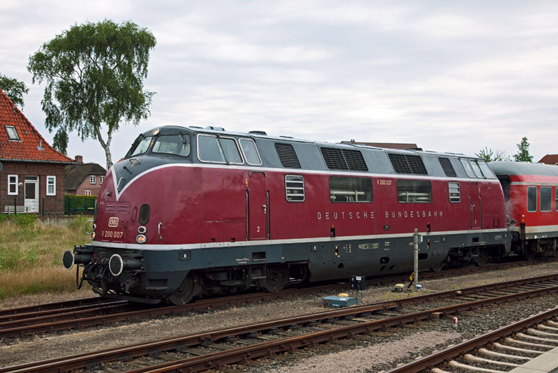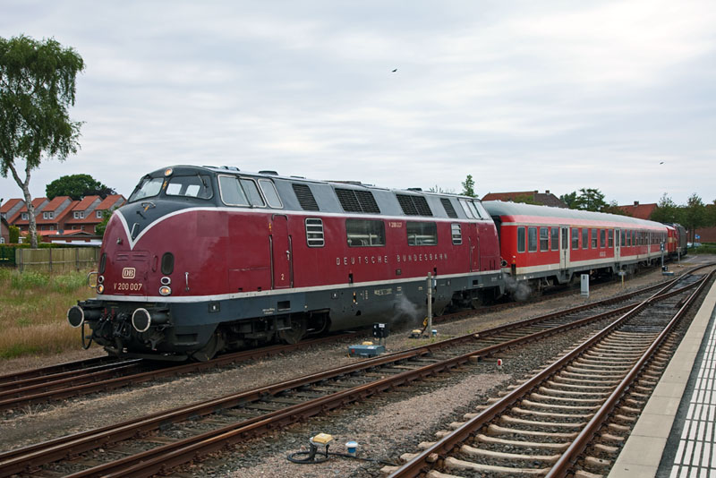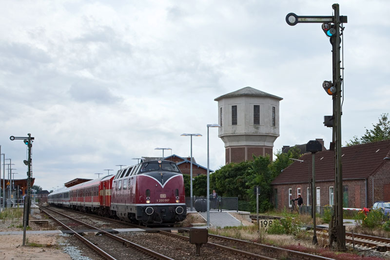 | Statt einer geplanten Dampflok fuhr die V 200 007 an drei Wochenenden einige Züge zwischen Niebüll und Dagebüll! Niebüll, 29. Juli 2012 |